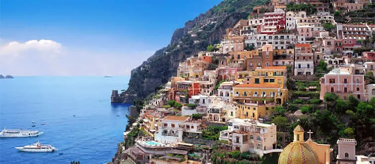 Which Italian coast is home to colorful villages like Positano?