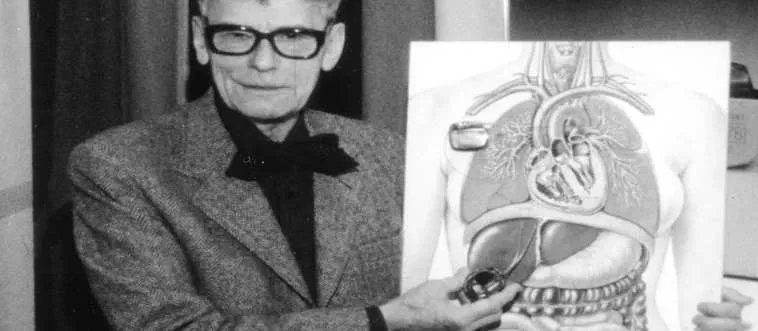 The first human heart pacemaker was implanted in which year?